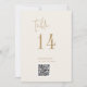 Diese moderne schicke Vintage QR Code Tischnummer eignet sich perfekt für eine einfache Hochzeit. Das neutrale Boho-Design zeichnet sich durch eine einzigartige und stilvolle böhmische Typografie in minimaler Gold- und Elfenbeinfarbe aus. Die Karte druckt auf der Vorder- und Rückseite (beidseitig). Verwenden Sie den Bar-Code, um auf Ihr Menü zu verlinken, oder eine Website oder ein Social Media, wo Ihre Gäste Fotos teilen können. Fügen Sie jede Tischnummer, die Sie benötigen, einzeln in Ihren Warenkorb.