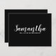 Die Bridesmaid proposed Card zeichnet sich durch den personalisierten Namen einer Brautjungfrau aus, der im Stil eines modernen Schriftartes mit weißen Schriftzeichen und Details in einem modernen serifenlosen Schriftart auf schwarzem Hintergrund steht. Auch perfekt für Trauzeugin, Blume Mädchen, Trauzeuge, Trauzeuge und Klingelträger.
