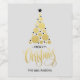 Moderner Goldbaum, schwarze Sterne, Frohe Weihnachten und Ihre Namen in schicken Schriften auf kaum grauem Hintergrund, personalisieren Sie diese Weinflaschen Etiketten für Ihre Feier oder als Geschenke oder Gastgeschenke für Geschäftsgeschenke, Firmengeschenke. Ändern Sie die Hintergrundfarbe auf irgendetwas.