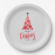 Moderner Rotkugel Weihnachtsbaum, schwarze Sterne und die Worte Frohe Weihnachten in schicken Schriften auf einem hellgrauen Hintergrund, sind diese Feiertagspapiertafeln perfekt für jeden Weihnachtsanfang. PASSENDE Artikel in unserer Sammlung.