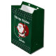 Diese personalisierte Weihnachtsgeschenktasche mit einem Sack Geschenke ist der perfekte Weg, um Ihre Weihnachtsgeschenke ganz besonders zu gestalten. Der grüne Hintergrund mit Schneeflocken-Details verleiht ihm einen festlichen saisonalen Look, während die Illustration von Weihnachten in seinem roten Anzug mit einem großen Sack den zeitlosen Weihnachtsgeist einfängt. Die elegante Weihnachtsskripttypografie fügt eine moderne und stilvolle Touch hinzu. Mit der Personalisierung können Sie einen Namen für ein gedankenvolles Detail, das jedes Geschenk einzigartig macht. Eine praktische und festliche Tasche - fröhlich, klassisch und voller Urlaubsmagie.
