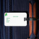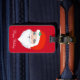 Moderner Weihnachtsmann auf dem roten Gepäckanhänger. Alle Texte sind personalisiert.