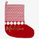 Verzieren Sie Ihren Umhang mit diesem modernen personalisierten WeihnachtsStrumpf. Die Spitze des Strumpfs kennzeichnet ein retro Schneeflockemuster, das mit Kreisverzierungen aufgereiht wird. Gerade unter diesem ist ein Raum für Ihren Namen in einem grünen und weißen Skript. Die Rückseite hat das gleiche Schneeflocke- und Verzierungsmuster und hat einen Raum für das Jahr im Weiß. Klicken Sie besonders anfertigen, um den Schriftart zu ändern, den Text oder die Grafiken die Größe neu zu bestimmen oder umzusetzen - redigieren Sie ihn, jedoch, das Sie mögen. Frohe Weihnachten!