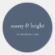 Moderne Holiday Aufkleber mit den Worten "Merry and Bright". Ideal für die Weihnachts- oder Neujahrssaison. Personalisieren Sie den benutzerdefinierten Text oben. Sie können auch die Hintergrundfarbe ändern. Weitere Koordinationsgegenstände finden Sie in unserer Kollektion "Moderne Farbenfrohe Freude & Helle Urlaub".