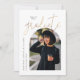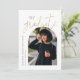 Moderne Abschluss-Anzeigenkarte mit Bogenrahmen für Ihr Foto mit weißem Hintergrund. Der Schriftzeichen-Text in Imitaten gold sagt "Graduierte" an der Spitze.