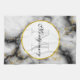 Ein Küchentuch mit elegantem, modernem Marmormuster. Weißer, schwarzer und rauchiger grauer Marmor mit dünnen Bändern von Imitat-Gold-Wirbel im ganzen Muster. Ein weißer Kreis mit einem Imitat-Gold-Rahmen überlagert mit dem Monogramm-Initial und dem Namen im Inneren.