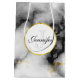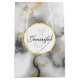 Eine personalisierte Geschenktasche mit elegantem, modernem Marmormuster. Weißer, schwarzer und rauchiger grauer Marmor mit dünnen Bändern von Imitat-Gold-Wirbel im ganzen Muster. Ein weißer Kreis mit einem Imitat-Gold-Rahmen überlagert mit dem Monogramm-Initial und dem Namen im Inneren. Perfekt gepflegte Tasche für einen Bräuner Gunst.