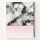 Ein Wendelheft mit elegantem, modernem Marmormuster. Weißer, schwarzer und rauchiger grauer Marmor mit dünnen Bändern von Imitat-Gold-Wirbel im ganzen Muster. Ein weißer Kreis mit einem Imitat-Gold-Rahmen überlagert mit dem Monogramm-Initial und dem Namen im Inneren.