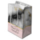 Eine Geschenktasche mit elegantem und modernem Marmormuster. Weißer, schwarzer und rauchiger grauer Marmor mit dünnen Bändern von Imitat-Gold-Wirbel im ganzen Muster. Ein hellrosa Farbverlauf unter dem marmorierten Muster. Personalisieren Sie mit Ihrem eigenen Text.