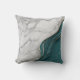Dieses moderne, trendige Kissen besticht durch einen eleganten grauen und weißen Marmor mit goldenen und dunklen aquamarinen grünen Akzenten.