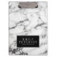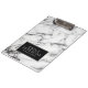 Moderner weißer Marmorstein mit schwarzem Hintergr Klemmbrett
