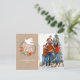 Eine hübsche Weihnachtskarte mit einer Taube in einem Blumenkranz mit den Worten Weltfrieden. Die Weihnachtspostkarte ist in aquamarin, rot und weiß auf einem kraftfarbenen Hintergrund gestaltet. Personalisieren Sie es mit Ihrem Namen, dem Jahr und Ihrem Foto. Entworfen für Sie von BlackBerry Boulevard.