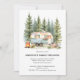 Moderner Wiedersehen Rustikaler Wald Einfache Einladung mit einem bezaubernden Vintagen Camper das ganze Set oben im Wald, umgeben von Kiefern und einem gemütlichen Lagerfeuer. Der gesamte Text auf der Einladung kann leicht in Ihre Wiedersehen-Details geändert werden und die Rückseite der Einladung ist ein schönes Gingham-Muster. Was für eine schöne Art, Ihre Familie zu Ihrem nächsten Wiedersehen einzuladen.