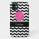Moderner und trendy Zickzack Streifen iPhone Fall kennzeichnet Zickzack Schwarzweiss-Streifen, einen rosa Ihren Namens-, Anfangs- oder einen anderen Text des Volleyballs und eines schwarzen Akzentgrenzrahmens für.  Zeigen Sie Ihre Persönlichkeit mit diesem Spaß und modischen iPhone Fall.  Macht ein großes Geschenk für jede Anlässe.  Klicken Sie "besonders anfertigen es!" an knöpfen Sie, um die Textgröße, die Textfarbe, die Schriftartart und mehr zu ändern!