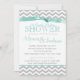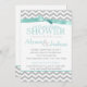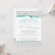 Graues Zickzack oder Zickzack Styling mit hübscher aquafarbener Bug-Polterabend-Einladung oder bei Bedarf Textwechsel für Brautpartys oder Babyduschen.