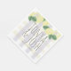 Leider ist beim Bestellvorgang nicht die Größe angegeben, zumindest habe ich es nicht gesehen. Der Name "Duschen"-Servietten ist etwas seltsam :-) Aber man kann aus verschiedenen Designs auswählen und es sieht ganz nett aus. Ich würde mir aber noch viel mehr verschiedene Farben und Muster wünschen! Insgesamt eine nette Idee für ein personalisiertes Accessoire zu allen möglichen Feiern. Der Druck ist OK, er ist nur ganz leicht unscharf.