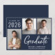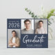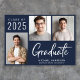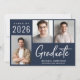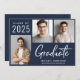 Moderne dunkelmarineblaue Abschluss-Ankündigung mit 3 Fotos und "Graduate" in einem zeitgenössischen fett-weiß Drehbuch. Fügen Sie den Namen, das Unterrichtsjahr und die Schule oder Universität in einfachen weißen Typografie.