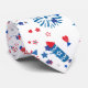 Modernes 4. Juli Muster, für den Urlaub. Dieses Bild ist ein nahtloses Muster mit einem festlichen Amerikanische Unabhängigkeitstag-Thema. Es ist ein lebendiges und fröhliches Design, das den Geist des amerikanischen Unabhängigkeitstages erinnert. Der Hintergrund ist transparent, auf dem verschiedene feierliche Elemente verstreut sind. Die auffälligsten Elemente sind ein rotes, weißes und blaues Feuerwerk, das die blendende Darstellung symbolisiert, die den Nachthimmel auf diesem besondere Anlass erhellt. Die roten, weißen und blauen Sterne verteilen sich auf das Feuerwerk, was das patriotische Ambiente noch verstärkt. Diese Sterne sind unterschiedlich groß und verstreut zufällig verteilt, was ein spielerisches und energetisches Gefühl schafft. Das Gesamtbild besteht aus kleinen, roten Herzen, die verstreut verstreut sind und dem Gesamtbild eine Touch von Süße und Wärme verleihen.