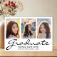 Schicken Sie Ihrer Familie und Ihren Freunden eine einzigartige personalisierte Foto Abschluss Postkarte, um sie zu wecken. Dieses moderne Template-Design verfügt über drei Fotos, mit denen Sie sich selbst wechseln können. Unter Ihren Fotos finden Sie das Wort "Graduate" in der modernen, schwarzen Schrift Typografie und Ihren Namen und Ihre Details zu personalisieren. Die Rückseite der Postkarte enthält mehr Details für Ihren Abschluss, damit Sie den Akzent durch eine schwarze Graduierungshülse anpassen können. Designed by artist ©Susan Coffey.
