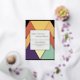 Diese moderne Hochzeitseinladung ist perfekt für das Ehepaar, das will, ein stilvolles Statement abzugeben. Die Einladung zeigt fett-Retro-Kalligraphie auf einem weißen Rechteck mit einem lebendigen, abstrakten geometrischen Hintergrund. Die künstlerische Verbindung von Alt und Neu verleiht jedem Event eine einladende und einzigartige Touch. Egal ob Sie eine Ansammlung planen oder eine große Feier planen, diese Einladung wird Ihren Gästen einen guten Eindruck vermitteln.