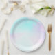 Papier Teller mit modernem abstraktem Aquarelldesign. Blau und lila vermischen sich und vermischen sich in einem abstrakten Muster in sanften Pastellfarben. Ein wenig mickrig, träumt dieses Design. Künstlerisch, stilvoll und schön.