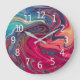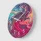 Modernes Abstraktes Blau- und Rot-Flüssig-Marmor-A Große Wanduhr
