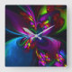 Modernes Abstraktes Blumenmuster Red Blue #15 Quadratische Wanduhr