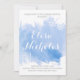 Moderne abstrakte Aquarellfarben Splash blauen Winter Brautparty Hochzeitseinladung mit einer handgemalten Aquarellfarbe spritzen mit Textur in Blautönen, Bäume in Weiß mit Schnee, Schneeflocken und Text in Weiß und Grau. Diese elegante und stilvolle lässige Hochzeitseinladung ist eine individuell anpassbare Vorlage, die sich perfekt für Ihre Winterhochzeit eignet. Beachten Sie, dass dies nur ein Bild von Aquarell ist und keine echte Textur. Für beste Ergebnisse wählen Sie Filz oder andere Papier.