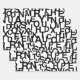 Abstraktes Muster aus schwarzen Buchstaben. Moderne, urbane typografische Kunst. Viele Buchstaben in chaotischem, dicken und dicken Look.