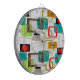 Modernes Abstraktes Design Mitte des Jahrhunderts in Aquamarinen, roten, goldenen, schwarzen und limiengrünen Farben. Der Künstler reproduzierte Design basierend auf einer Armbanduhr aus der Atomzeit.
