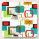 Modernes Abstraktes Design Mitte des Jahrhunderts in Aquamarinen, roten, goldenen, schwarzen und limiengrünen Farben. Der Künstler reproduzierte Design basierend auf einer Armbanduhr aus der Atomzeit.