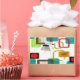 Modernes Abstraktes Design Mitte des Jahrhunderts in Aquamarinen, roten, goldenen, schwarzen und limiengrünen Farben. Der Künstler reproduzierte Design basierend auf einer Armbanduhr aus der Atomzeit.