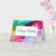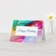 Herzlichen Glückwunsch zum Geburtstag Grußkarte mit einer Nachricht, in der Sie personalisieren können, wenn Sie möchten. Entworfen mit einem extravaganten künstlerisch abstrakten Design. Wasserfarbenmalerei mit Farbmischungen und -mischungen, die ein fließendes Marmormuster erzeugen. Ein weißer Rahmen mit einem Imitat mit goldener Folienabdeckung überlagert mit einem personalisierten Text, der innen geschrieben ist.