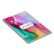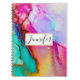 Personalisiertes Spiralheft mit extravagantem künstlerisch abstraktem Design. Wasserfarbenmalerei mit Farbmischungen und -mischungen, die ein fließendes Marmormuster erzeugen. Ein weißer Rahmen mit einem Imitat mit goldener Folienabdeckung überlagert mit einem personalisierten Text, der innen geschrieben ist.
