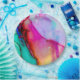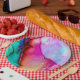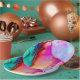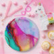 Eine Papiertafel mit extravagantem künstlerisch abstraktem Design. Wasserfarbenmalerei mit Farbmischungen und -mischungen, die ein fließendes Marmormuster erzeugen.