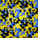 Moderne, gelb-blau-schwarz Abstrakte Camouflage wie einzigartiges Stoffdesign.