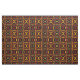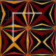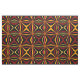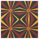 Dieses zeitgenössische Stoffdesign zeichnet sich durch ein sich wiederholendes, modernes, abstraktes geometrisches Sonnenstrahlen aus, die auf einem schwarzen Hintergrund in Rot, Gelb, Gold, Orange und Braun gehalten sind.