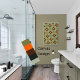 Modernes abstraktes Salbeigrün mit orangefarbenen Quadrat-Leinwand ist eine großartige Möglichkeit, Ihrem Bad eine Touch von Farbe und Design hinzuzufügen. Das Mischen zeitgenössischer Kunstwerke mit abstrakten Designs bringt Leben und Persönlichkeit in Ihren Badezimmerbereich. Die Wandkunst wird sich gut mit der Erholung Ihrer Dekoration in grün und orange abstimmen.