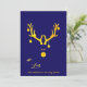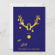 Ein lustiges und niedliches, modernes abstraktes Bild eines Rentierkopfes in den Imitaten Gold. Mit Weihnachtsschmuck, Bausteine hängen von den Antlers. Klassischer blauer Hintergrund, goldene Buchstaben und der Text: Mit Liebe. Passen Sie Ihren Familiennamen an und fügen Sie ihn hinzu. Zurück: ein abstrakt leuchtender Weihnachtsbaum in Imitat Gold. Blaue Hintergrundfarbe.