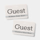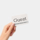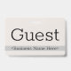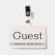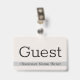 Dieses moderne Abzeichen-Design enthält die Meldung "Gast", einen benutzerdefinierbaren Firmennamen oder eine andere benutzerdefinierte Nachricht. Ein Abzeichen wie dieses könnte verwendet werden, um anzuzeigen, dass ein Besucher oder Gast an einem Arbeitsplatz dort sein darf. [~Z0000307]