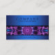 Stilvolle moderne Geschäftskarte mit Stück eines lila und blauen Mandala, der auf der Front mit einem blauen Hintergrund darstellt. Klicken fertigt besonders an, um mehr Kontrolle über Schriftartwahlen und den Gebrauch von Textraum zu haben.