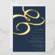 Eine einfache, moderne marineblaue Hochzeitseinladung mit einem echten Goldfolienampersand. Personalisieren Sie alle wichtigen Details, einschließlich Brautname und Bräutigam, Hochzeitstag und Ort.