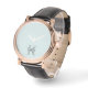 Modernes Aqua Blue Monogram Script Armbanduhr