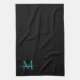 Modernes, stilvolles elegantes Schwarz Aquamarin Aqua Green Monogram Script Name Küchentuch
