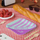 Modernes, Aquamarin rosa Streifen Papierplatte in Pappteller