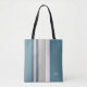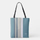 Fügen Sie mit dieser Tasche eine schöne moderne Touch zu Ihrem Shopping-Trip. Die Tote Tasche enthält Streifen aus Blau, Bräune und Weiß und Ihr Familienmonogramm in der unteren rechten Ecke. Dies wäre ein personalisiertes Geschenk für einen Haushalt, Brautparty, Hochzeit, Geburtstag, Weihnachten oder anderen Urlaub!