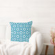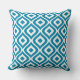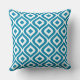 Das quadratische Akzent Kissen-Design zeichnet sich durch ein stilvolles, rautenförmiges geometrisches Muster aus. Die Farben sind weiß und aquamarin blau.