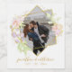 Weinetikett mit zarten Aquarellfarben-Blume und goldenen Akzenten für Hochzeitsempfang oder Probe Abendessen. Pärchen Foto, Name und Hochzeitsdatum.