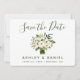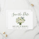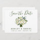 Modern gewellte Blumenkarte Save the Date Verlobung Grün und Weiß Bouquet