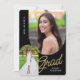 Laden Sie Freunde und Familie in Ihr "Grad Party" mit der modernen, 2 Foto, Schwarz und Gold Einladung ein. Das Design besteht aus Fotos mit gewölbten Kanten. Benutzerdefinierter Text auf der Rückseite ermöglicht es Ihnen, Ihre Party-Details zu personalisieren.